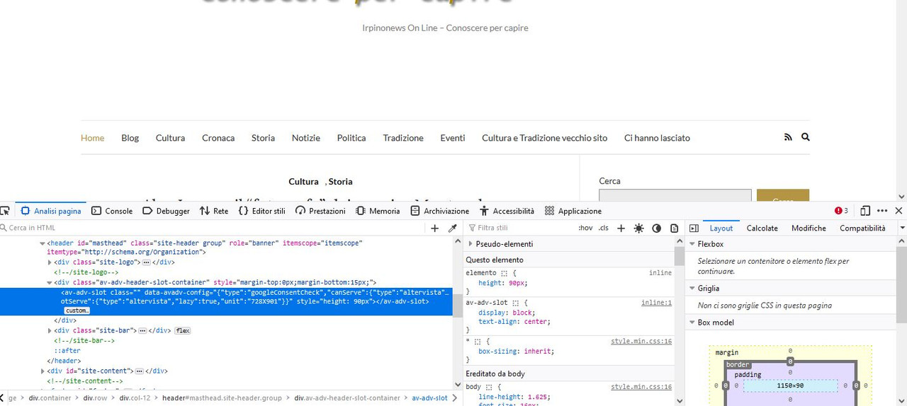 questo è il sito lo spazio + sv.adv slot contanier 1150x90 px vorrei togliere(mo lasca troppo spazio tra il logo e la barra menu) tema Olsen light.