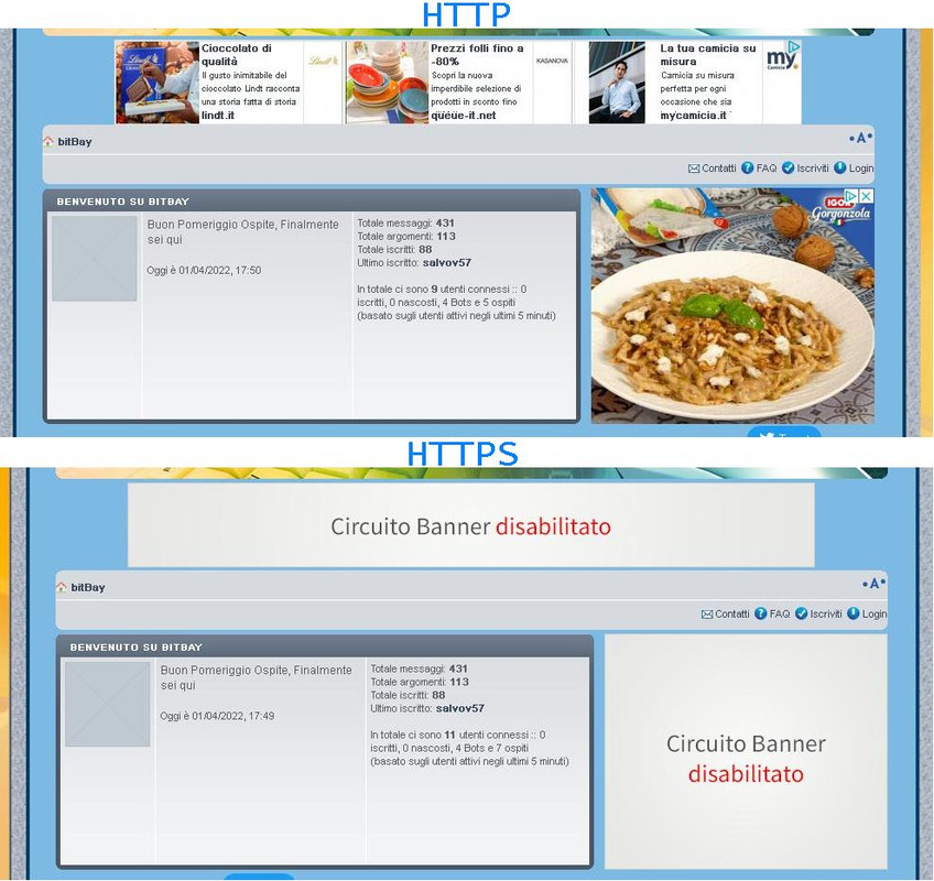 mi aiutate a capire come mai nella mia installazione di phpbb 3.0.11 abilitando il protocollo https non si visualizzano i banner pubblicitari altervista e adsense?