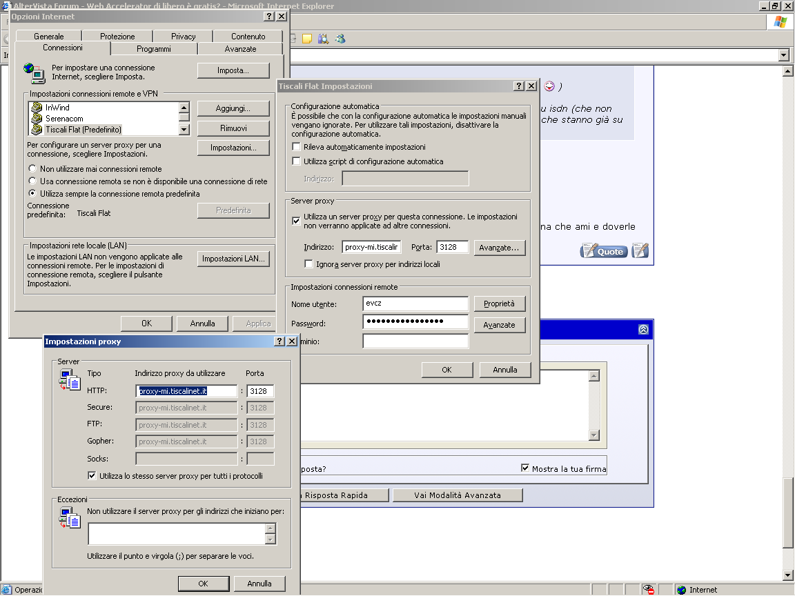 tiscali ha già un proxy (sembra che funzioni solo per i dialup... non per le adsl...):