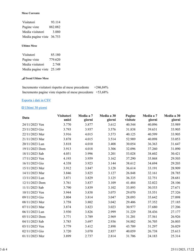 Noto dal secondo file questa dicitura: incremento visitatori rispetto al mese precedente: 246,84%
