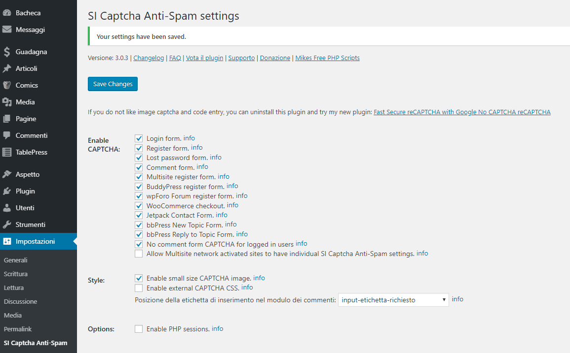 Se lo seleziono, comunque nella pagina principale del mio wordpress non viene aggiunto il captcha e quindi non posso fare login lo stesso perché lo richiede, se lo deseleziono, anche se nella pagina principale manca il blocco del captcha, facendo login mi dice che non ho fatto il captcha e non mi fa entrare lo stesso...